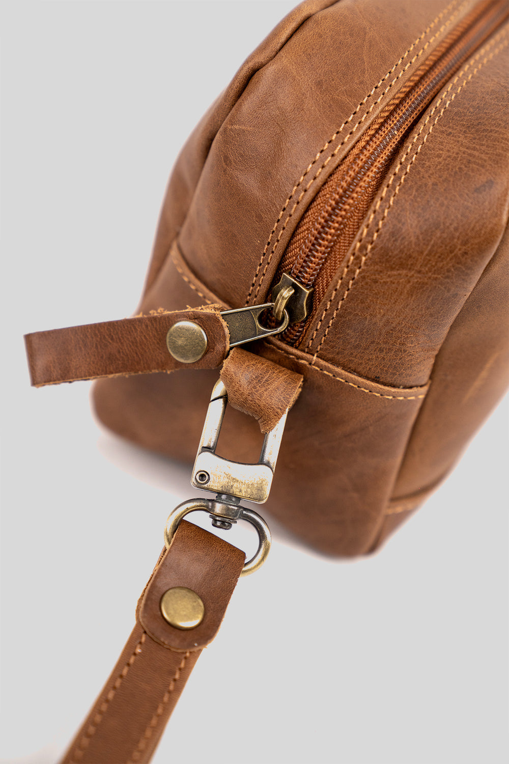El cuero puede presentar variaciones sutiles en su tono o marcas propias de su origen natural, haciendo que cada neceser sea único.